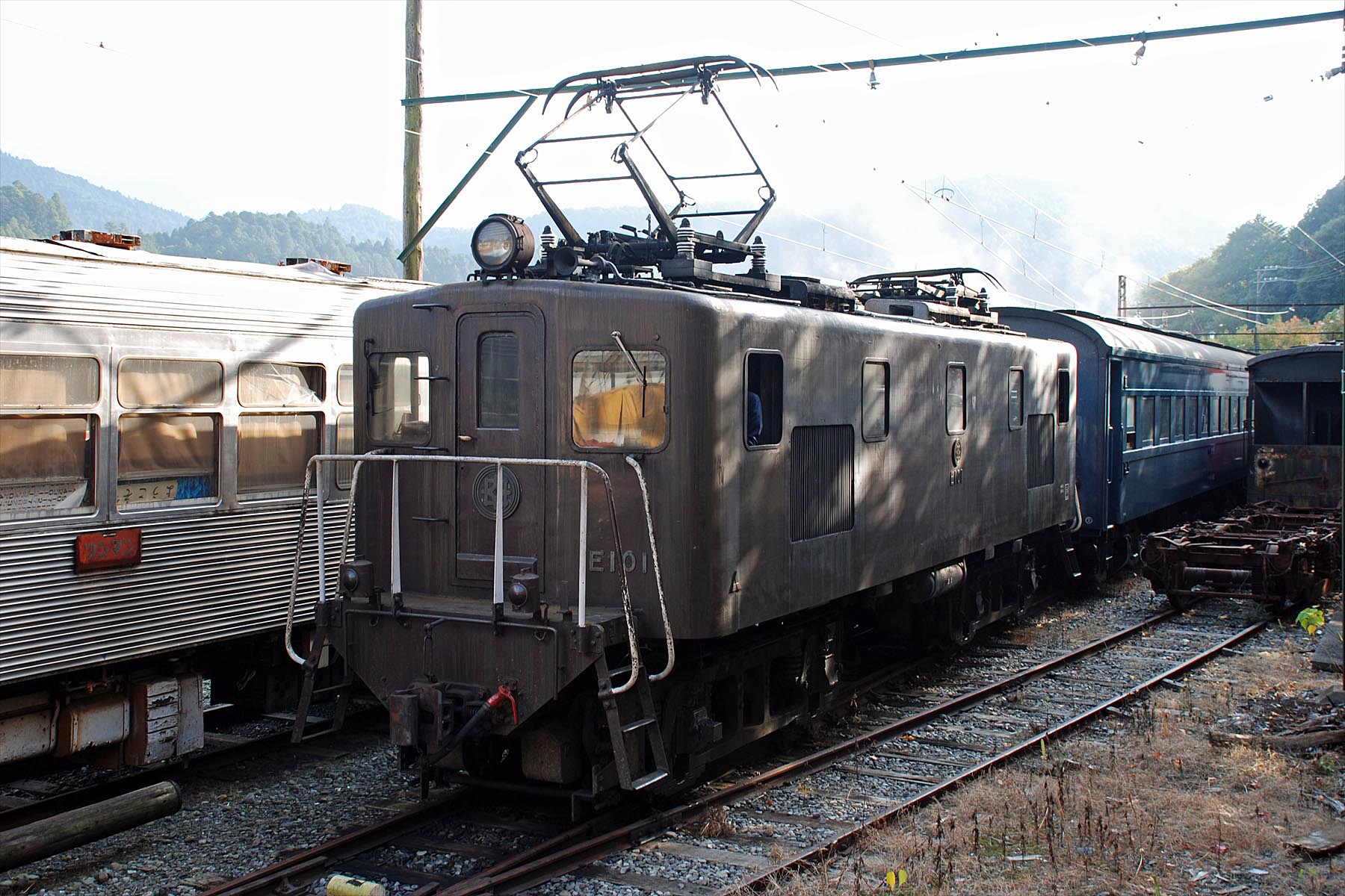 大井川鐡道・千頭駅 2025/3/22 蒸気機関車, 私鉄, 保存車両 ◆2007-11-04 E100形 E101 スハフ42 186 スハフ42 286 オハ47 81 C56 44 泰緬鉄道735 仕様 井川線 DD20 井川線 クハ600形 クハ601 E100形 E102 C10 8 DB1形 DB9 井川線 川根両国車両区