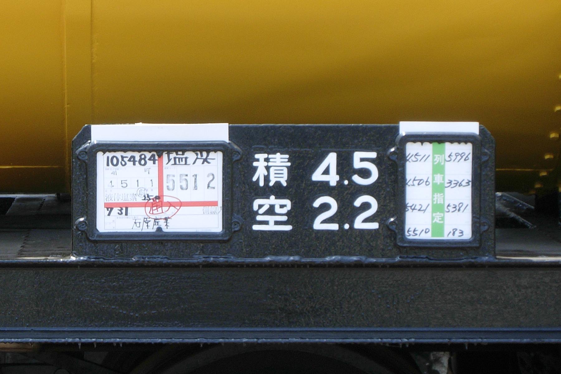 タキ105484は扇町 発~塩浜 行(石原産業)