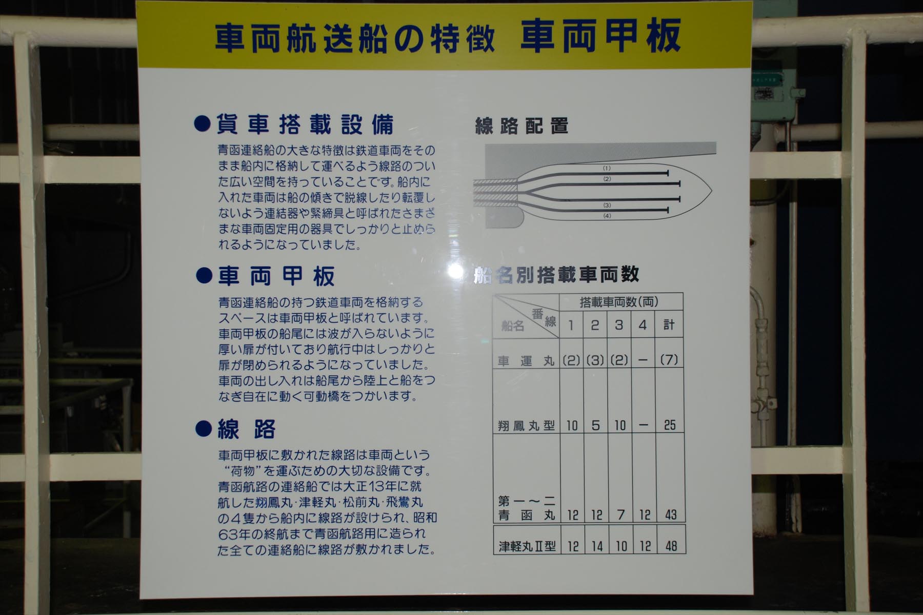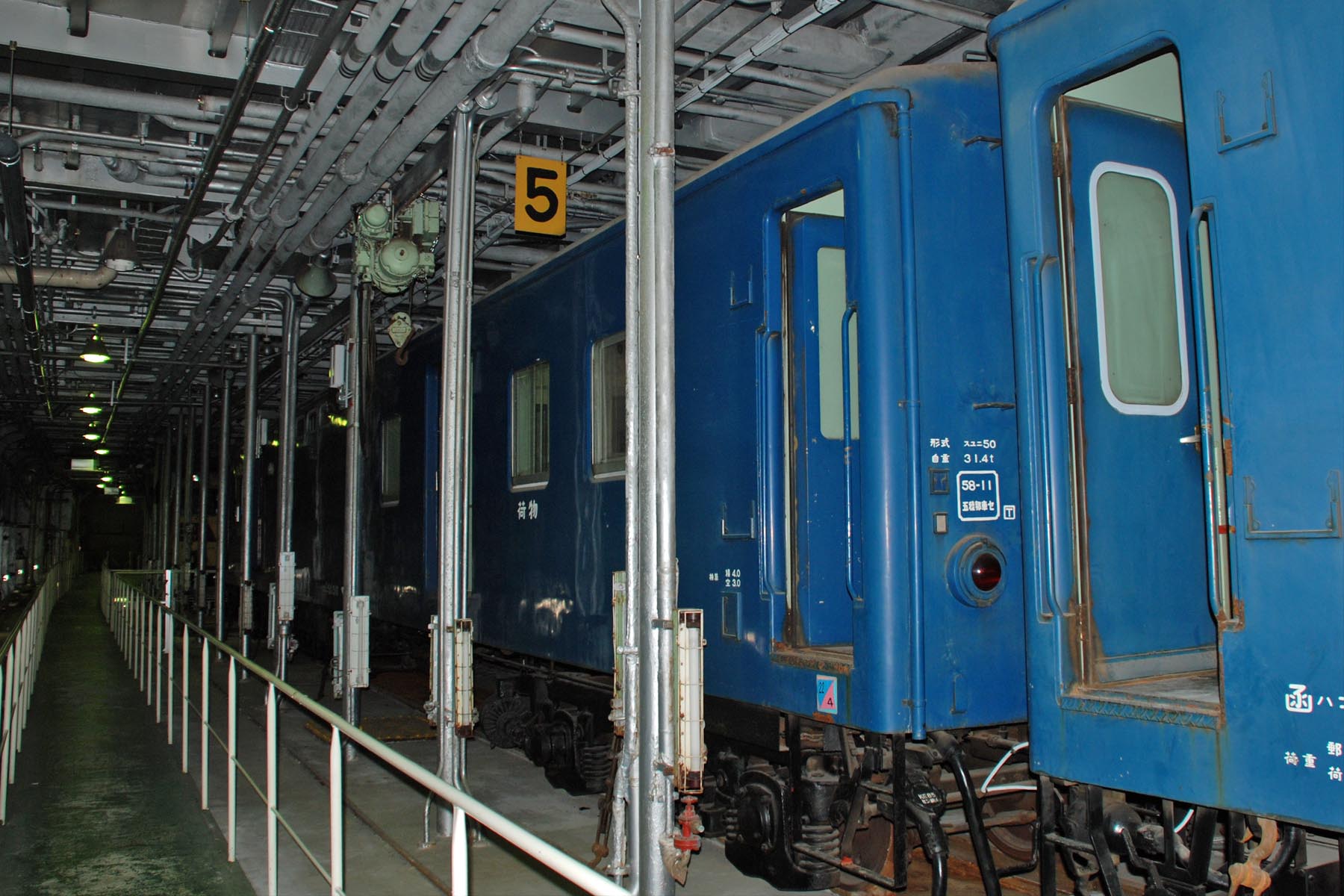 八甲田丸の車両甲板には保存車両が展示されています