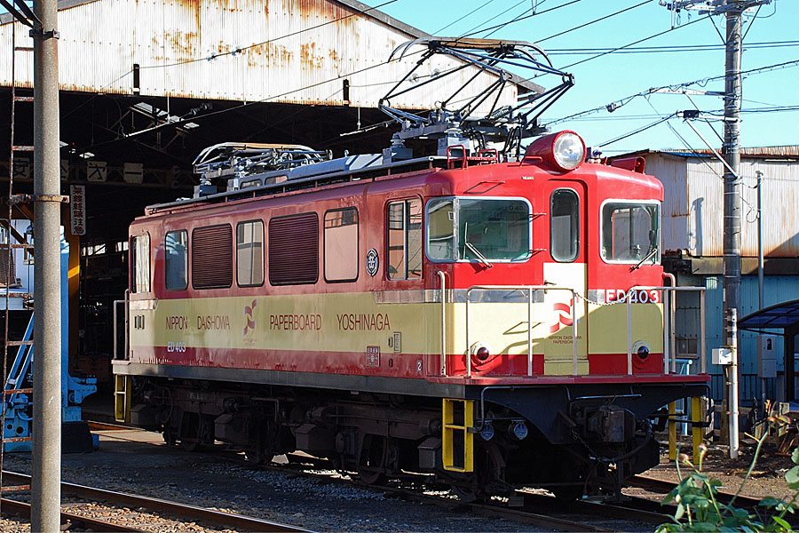 岳南富士岡の検修庫前にED403が留置されていました