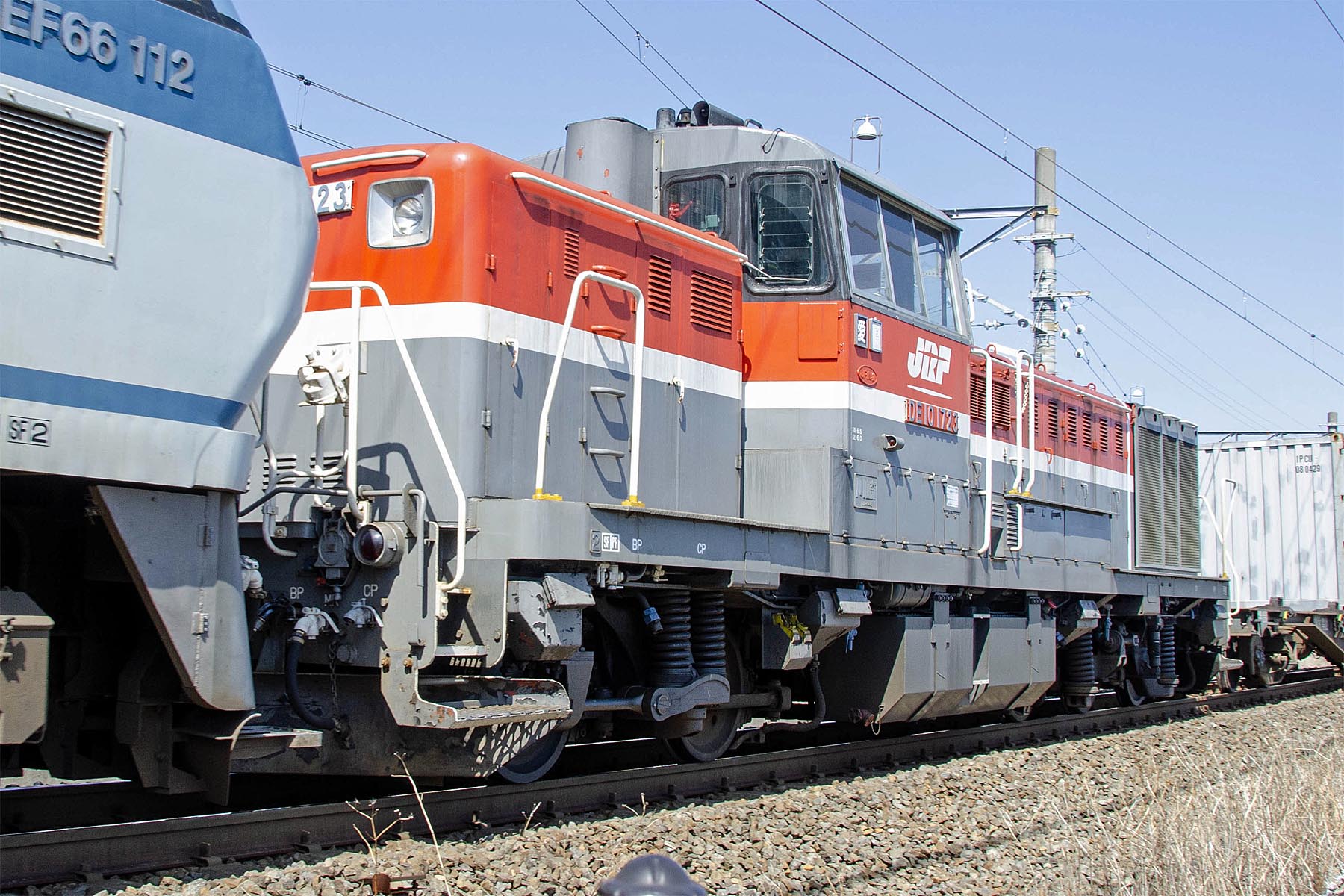 951レ EF66 112+DE10 1723 2025/10/23 高速貨物, 単回・重単・ムド ◆2012-03-29 951レ EF66 112 牽引 東海道本線 静岡貨物~東静岡 静岡貨物駅から機次位にDE10 1723(無動力回送)が連結されました 951レ DE10 1723(無動力回送) 東海道本線 静岡貨物~東静岡