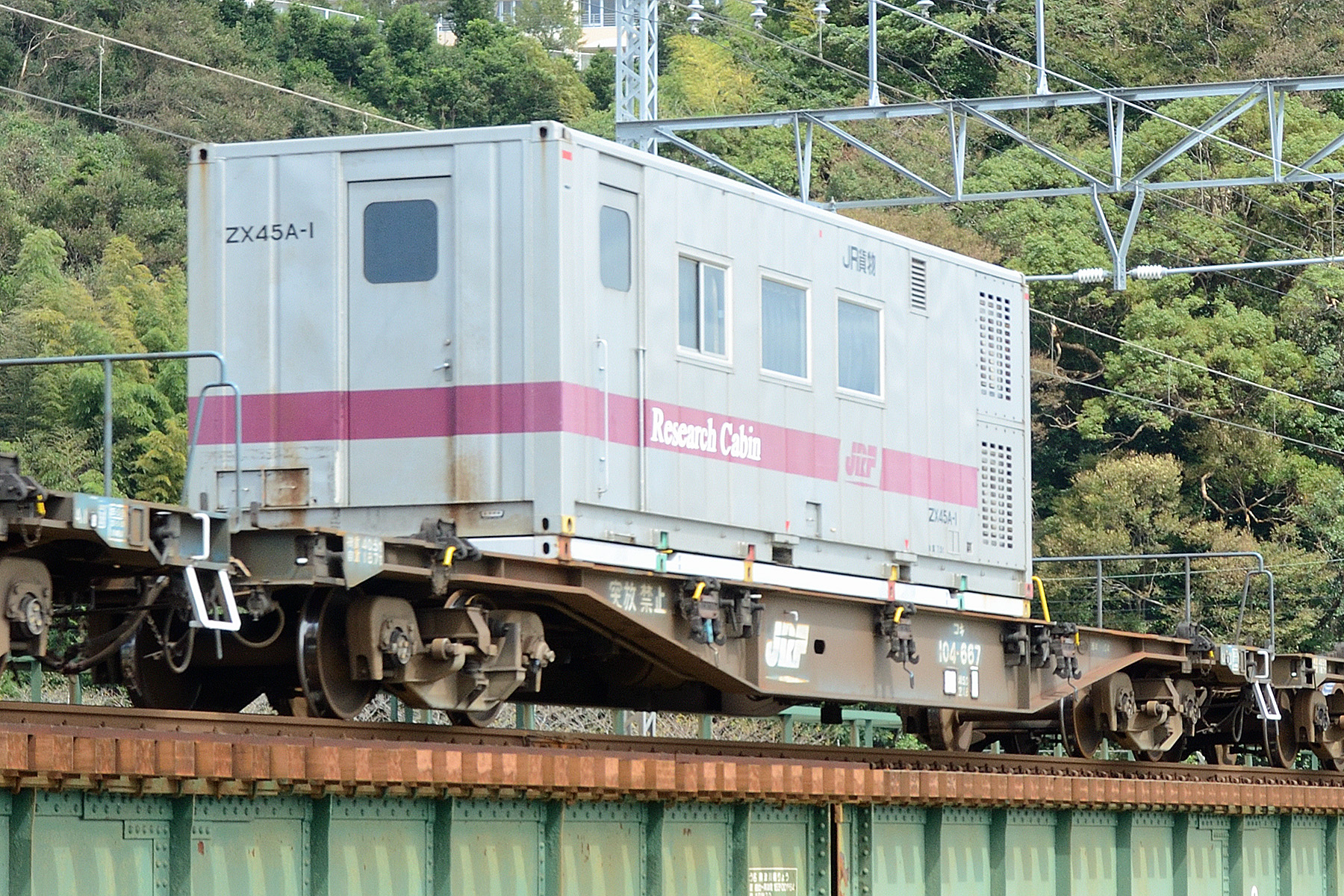 ZX45Aを載せたコキ104-667はホキ2000型の性能試験に使用するため静岡貨物駅で解放