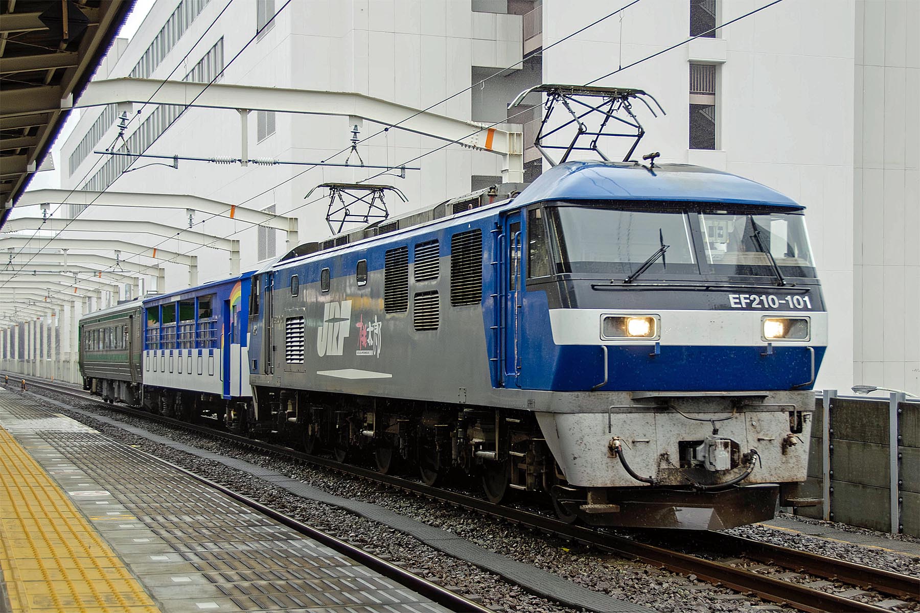 アンパンマントロッコ 2025/10/15 甲種輸送 ◆2012-03-02 JR四国の観光列車『アンパンマントロッコ』が東日本大震災の復興企画として JR東日本管内で運行されるため甲種輸送が運転されました 甲60:『アンパンマントロッコ』編成(キクハ32-502+キハ185-26) 8862レ EF210-101 牽引 東海道本線 静岡 8862レ EF210-101 牽引 東海道本線 興津